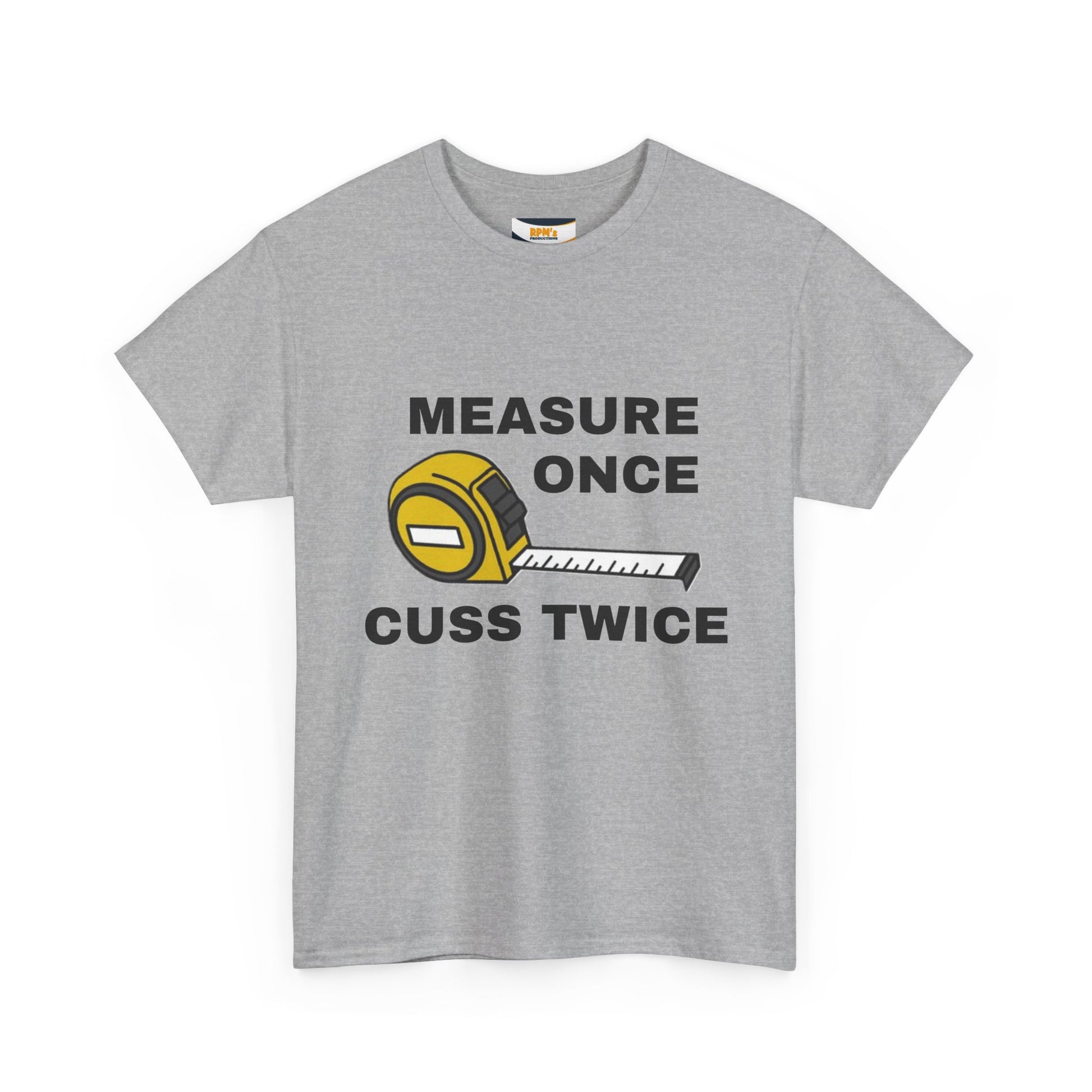 Funny Construction T-Shirt - Measure Once, Cuss Twice - Great Gift for Contractors, DIY Lovers, Home Renovators, Birthdays, Fathers Day